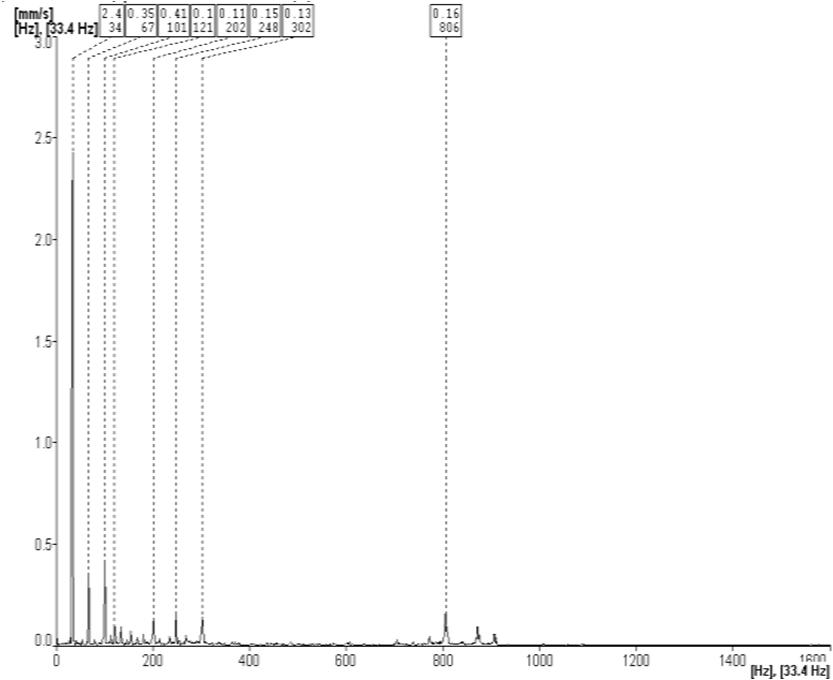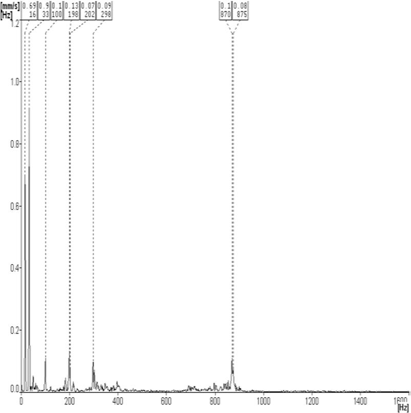 1) Frequency Spectrum of Unbalance of 30Gram at a Radius of 45 mm in Rotor