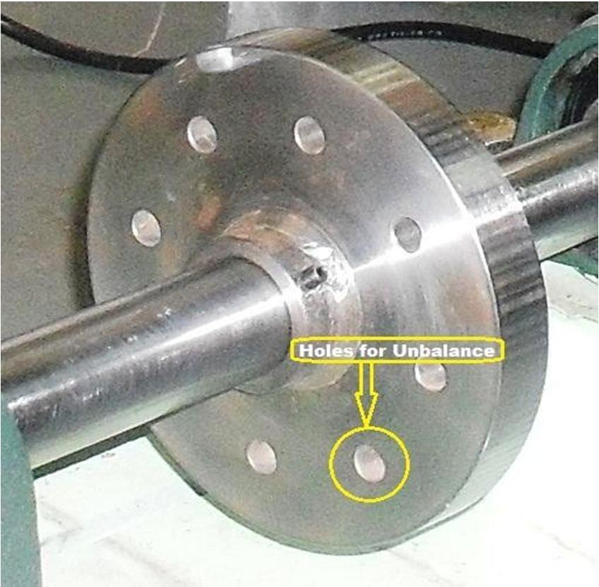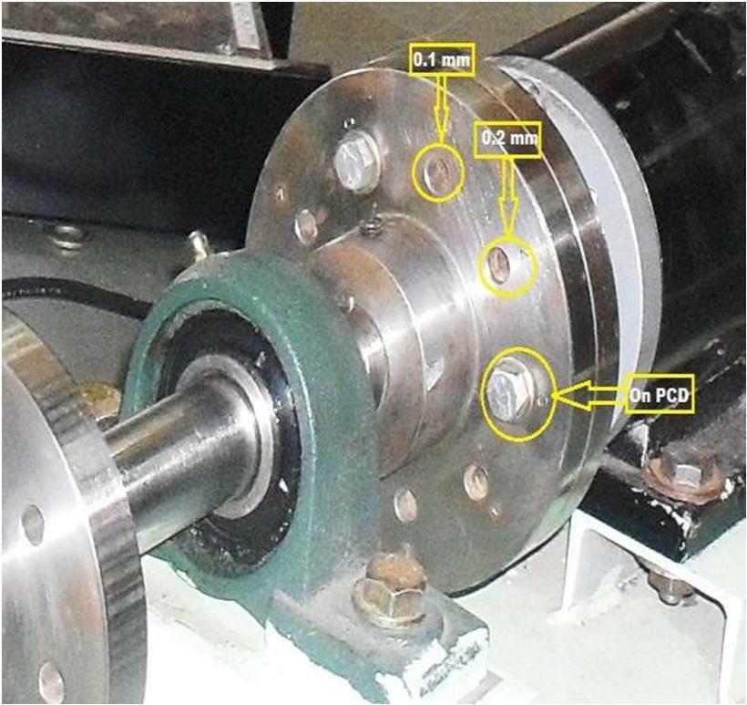 For generation of parallel misalignment inthe healthy setup three holes for bolt on the output flange of the coupling are shifted on either side of the axis of coupling. Offset is 0.1 mm& 0.2 mm forparallel misalignment of 0.1mm and 0.2 mm respectively