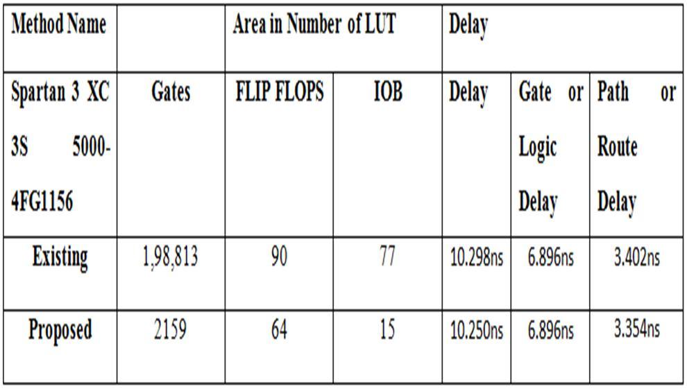 The Proposed Modulation design concepts are built in Verilog HDL, generated with Xilinx for various bit sizes, and the latency and area are compared. As seen in Fig., Modulation Scheme without ROM has the smallest area and has the shortest latency when compare to Conventional Modulation Scheme as the number of bits increases. The results demonstrate that using proposed design for inclusion achieves the suggested Design's overall minimum area.