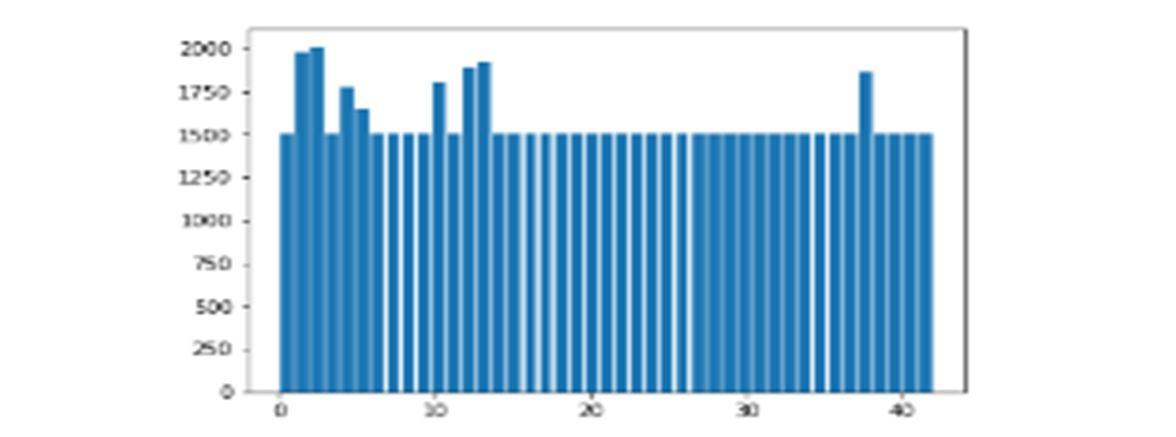 Each of the each of the 43 folders in the "train" folder corresponds to a different class. The folder contains numbers from 0 to 42. Using the OS component, we must loop through the sections and add images and descriptions to the dataset and name list. Each of the particles that make up an image is of which contains three color values (RGB) (Red, Green Blue). We transformed the image into numbers so that machines could interpret it. We utilize the PIL (Python Imaging Library) for this, which can do a variety of picture processing operations. The photos were then resized according to some standard parameters. As a result, we scale all of the photographs to a standard size, such as 30 by 30 pixels.Let's go into each class, open the photo with PIL, and change its size to 30x30. The X and Y rows will then be supplemented with the info and label, however. The data and values were converted into Arithmetic operations to feeding the model once all of the images and respective labels had been saved in arrays (data and labels). However, the database's shape is (39209, 30, 30, 3), suggesting that it consists of colored images and there are 39,209 photographs with a 30x30 pixel density (RGB Value).