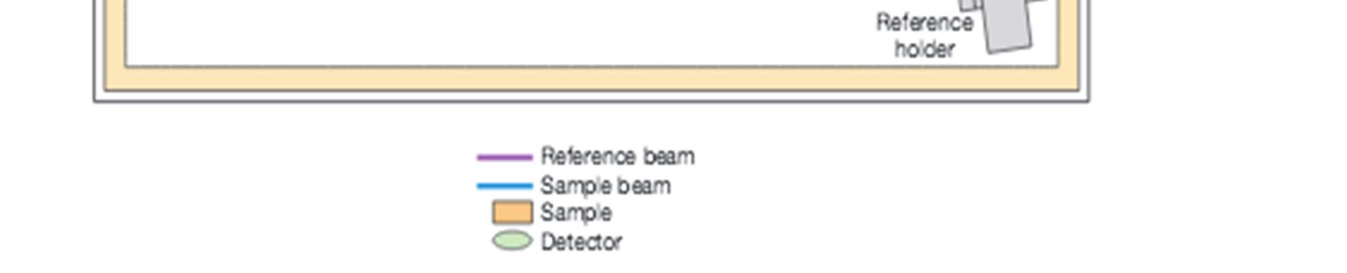 A sample is placed in front of the integrating sphere. Light from an optical light source is transmitted through the sample and enters the integrating sphere. The light is then reflected by the internal surface of the sphere and reaches the detector.Both the overall transmittance and the direct transmittance can be measured.