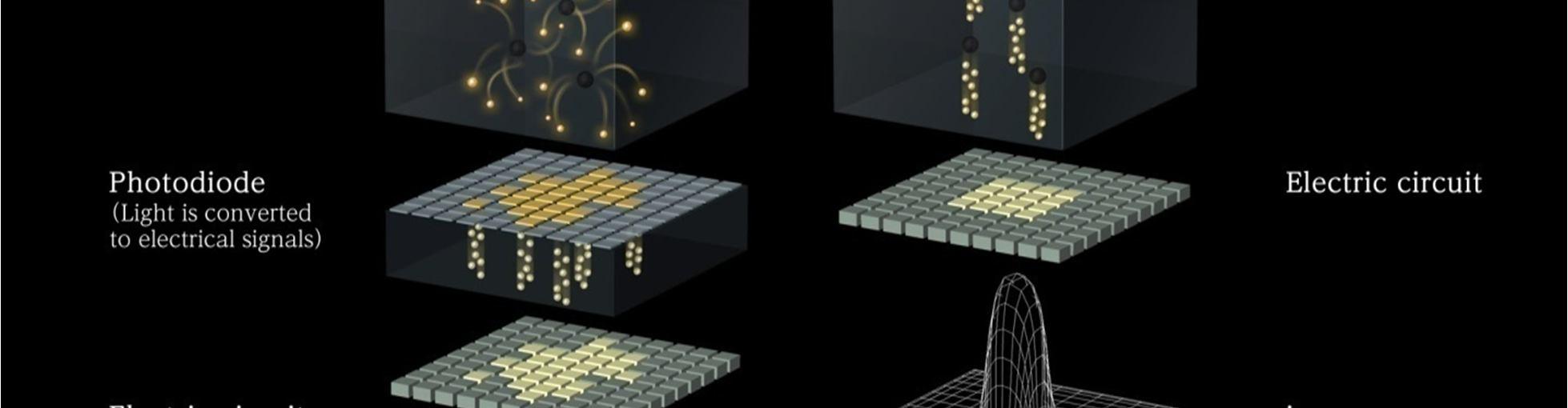 As regards the CdTe detector, radiation exposure to the crystal is directly changed to electrons and holes, electric charge carrier; it is called a direct conversion detector. Electric charges generated from the absorbed radiation directly gravitate towards electric fields and are transferred to pixel electrodes. Hence, signals hardly spread over; the structure enables obtaining sharp radiographs. One of the CdTe radiation detector characteristics is sufficient energy resolution applicable for various applications; the characteristic is very useful for the identification of radioactive nuclides for environmental inspection, material identification with X ray fluorescence, and medial gamma ray imaging.