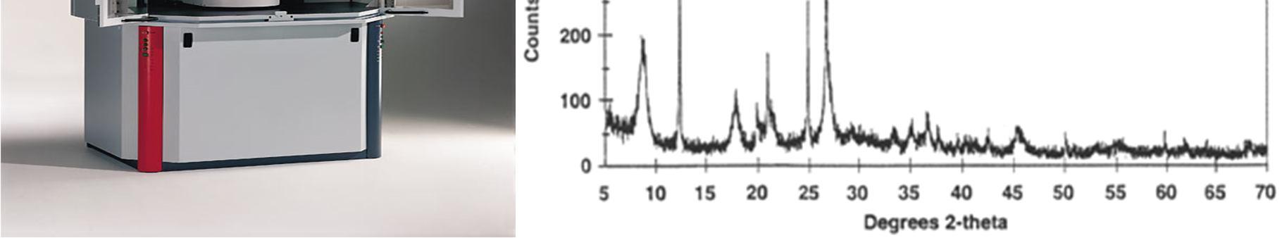 X ray powder diffraction (XRD) is a rapid analytical technique primarily used for phase identification of a crystalline material and can provide information on unit cell dimensions. The analyzed material is finely ground, homogenized, and the average bulk composition is determined. X ray diffraction Is a common technique for the study of crystal structures and atomic spacing. X ray diffraction is based on constructive interference of monochromatic X rays and a crystalline sample. These X rays are generated by a cathode ray tube, filtered to produce monochromatic radiation, collimated to concentrate, and directed toward the sample. The interaction of the incident rays with the sample produces constructive interference (and a diffracted ray) when conditions satisfy Bragg's Law (nλ=2d sin θ). This law relates the wavelength of electromagnetic radiation to the diffraction angle and the lattice spacing in a crystalline sample. These diffracted X rays are then detected, processed, and counted. By scanning the sample through a range of 2θangles, all possible diffraction directions of the lattice should be attained due to the random orientation of the powdered material. Conversion of the diffraction peaks to d spacing allows identification of the mineral because each mineral has a set of unique d spacing. Typically, this is achieved by comparison of d spacing with standard reference patterns.