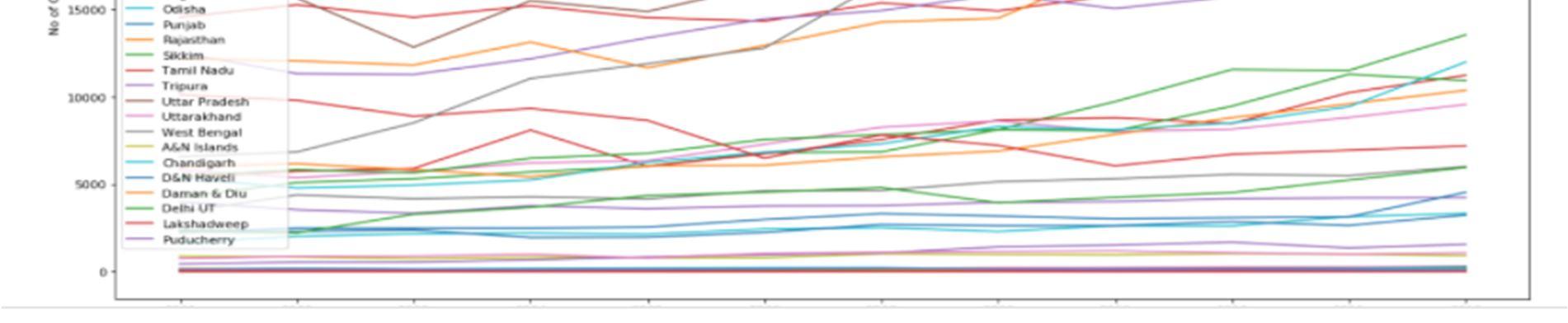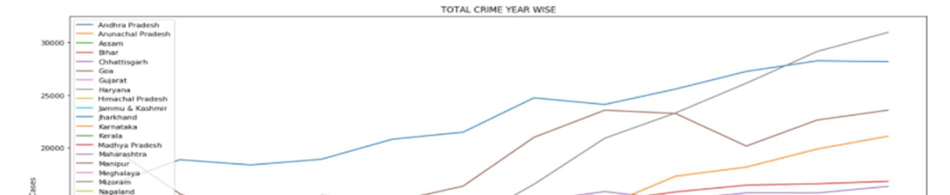 The proposed system is based on the machine learning algorithms that are available to users that can be implemented on datasets. However, there are two major types of learning algorithms: supervised learning and unsupervised learning algorithms. Here we use different machine learning algorithms such as Linear Regression, Random Forest , Support Vector Machine and clustering techniques. The dataset contains different types of crimes that are being committed in India according to the state and year respectively. The proposed model mainlyhas four phases: Data Collection, Data Preprocessing, Feature Extraction, Evaluation Model.