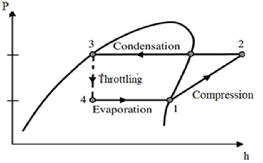 Figure 2 shows the pressure-enthalpy diagram of a vapour compression cycle