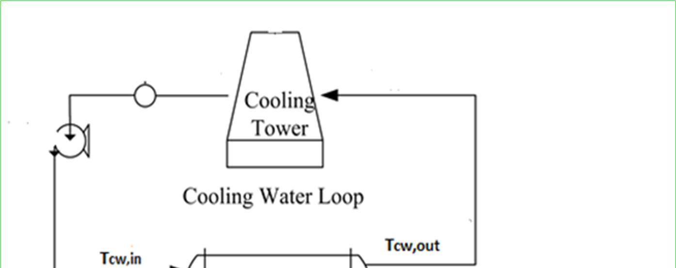 The refrigerant rejects heat to the water flowing down from the cooling tower; this occurs at a constant pressure. The heat rejected by the refrigerant in the condenser (process 2-3) is given as = (ℎ ℎ )= ( , , ) (2) where is the mass flow rate of the cooling water, , and , are the temperatures of cooling water leaving and entering the condenser, respectively.