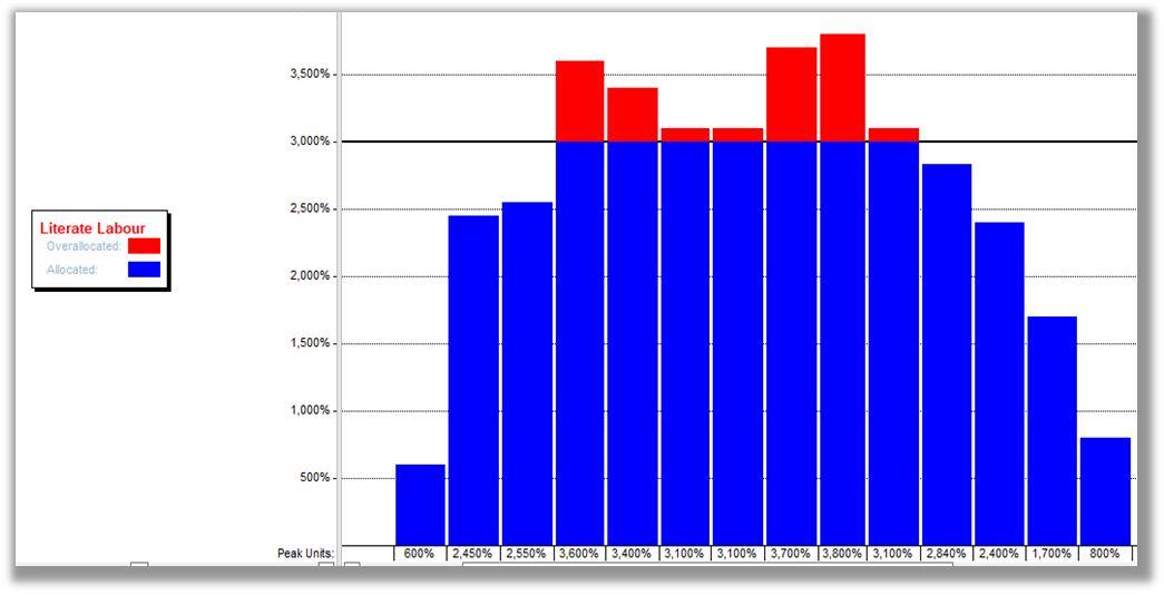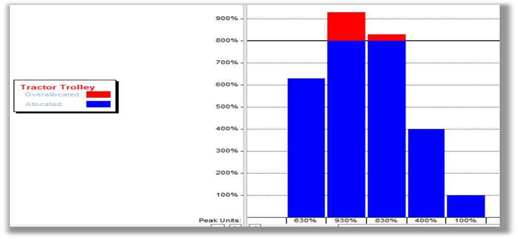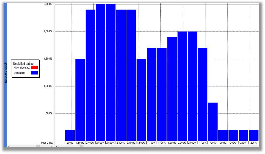 3) Resource levelling is done for resource constrained analysis. Only labour and machinery are considered resources for this project. In exchange for lessening resource restrictions, duration is extended.