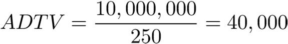 For example, if the total trading volume over the past year was 10 million shares and there were 250 trading days during that period, the ADTV would be: