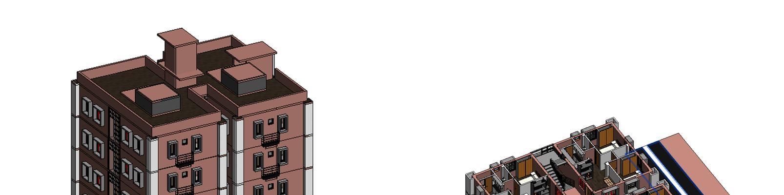 This project's model creation process was intended to create three dimensional models from simple two dimensional sketches. The project's eventual goal of conflict detection is taken into consideration when doing this. Various pieces of software are utilized for this, however in this case, Autodesk Revit 2020 is used. To do this, each level of the Arch Autocad 2D drawing layout is linked to Revit with the corresponding units taken into account in Autocad being maintained for the Revit model Based on this, the 2d layout specification is used to represent the components of the 3D model. The materials of all elements and sizes of the doors and windows must precisely match the specifications. Below figures shows the Architectural Modeling done in Revit;