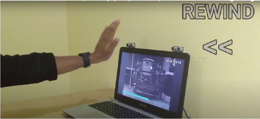 We run the application and test the system by using various hand gestures in front of the sensor that is implemented on the laptop/computer after successfully implementing all the components for the smart video player. Our hand gesture was successfully detected by the laptop, and it responded appropriately. We employ a variety of hand gestures, such as the full palm signifying a pause, the pointing fingers on the left and right signifying moving backward and forward, respectively. Waves upward and downward signify an increase in volume, respectively.