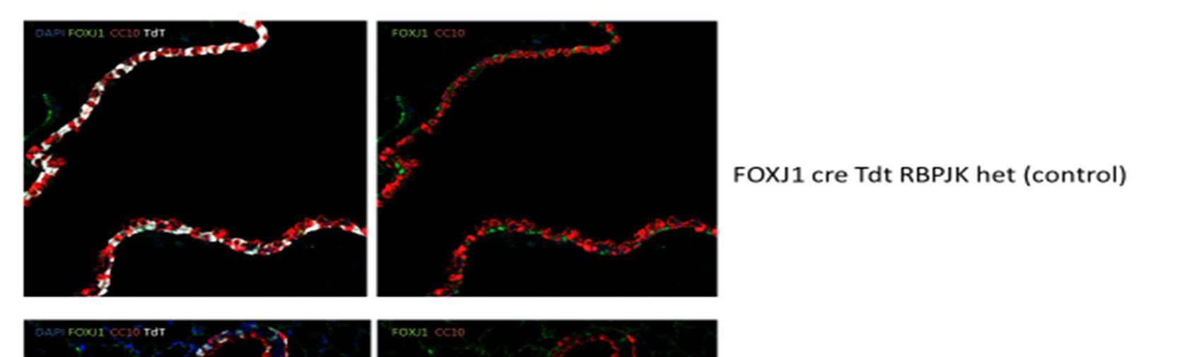 Through the experiment, we see that there is no change in the general architecture of airway epithelium between the control and test animals; the number of club cells and the number of ciliated cells were not significantly different in test and control. Thus, what we can conclude is that there is no obvious cell specific role for Notch signaling in ciliated cells in phenotypic level. Further experiments have to be carried out to understand if there is any gene regulatory role for Notch in ciliated cells.