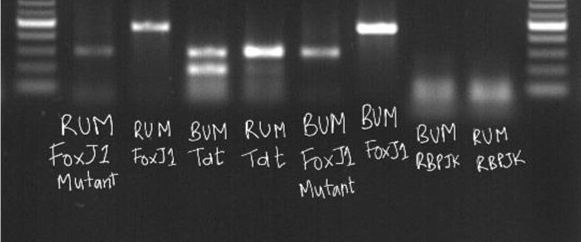 The main part of this experiment was generating the mice. Two FOXJ1 CreErtm/+RBPJkflox/flox mice were utilized; one control and one test subject. Portions of the mice’s tails were cut and DNA was extracted from them.