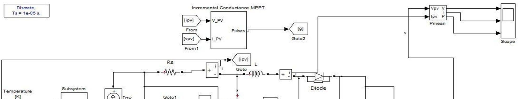 a) Simulation Model of PV system with Incremental Conductance MPPT with BoostConverter technique