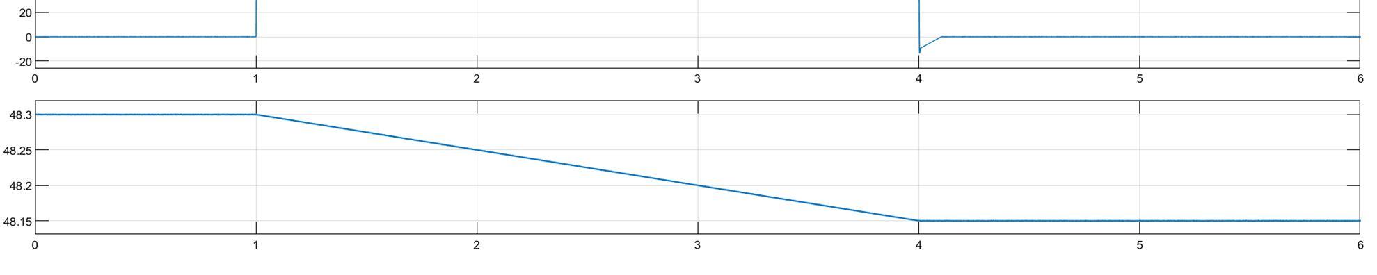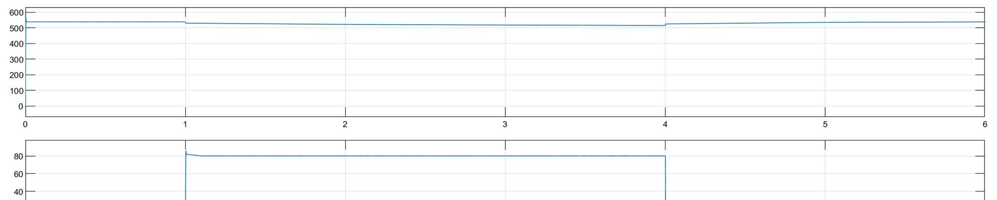 The charging station design procedure is adapted from [4] and the obtained parameter values are given in Appendix. The wind turbine is operated at rated speed giving an output maximum power of 100 kW. The solar PV is operated at standard test conditions (1000W/m2 irradiance and 25oC temperature) giving the maximum power output of 50 kW. A 150 kW resistive load is connected to the 480 V ac bus.