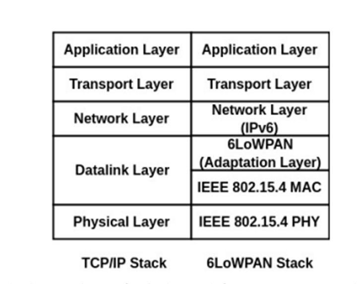 6LoWPAN design adds an adaption layer between the network and data link layers any of the currently available address spaces can be used to handle the compatibility of ipv6 packets over existing ipv4 networks translation strategies adapted by the edge router in figure 2 the normal tcpip design of conventional wsns is contrasted with the 6lowpan architecture that enables wsn to connect to the internet the 6lowpan edge routers adaption layer handles packet forwarding at the network layer, so removing the the requirement to save application layer state. This lowers the energy usage and hinders the integration of low-powered devices devices to the Internet, making security a significant issue concern. This has also led to the development of new Internet applications. Internet of Everything (IoE) and the Internet of Things (IoT), which are outside the purview of this paper.