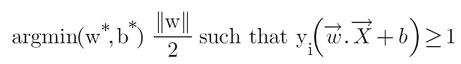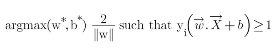 In order to get our optimization function, there are few constraints to consider. That constraint is that “We’ll calculate the distance (d) in such a way that no positive or negative point can cross the margin line”.