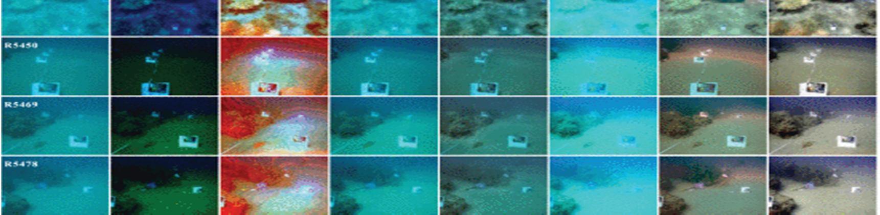 In order to deal with underwater image processing, we have to consider first of all the basic physics of the light propagation in the water medium. Physical properties of the medium cause degradation effects not present in normal images taken in air. Underwater images are essentially characterized by their poor visibility because light is exponentially attenuated as it travels in the water and the scenes result poorly contrasted and hazy. Light attenuation limits the visibility distance at about twenty meters in clear water and five meters or less in turbid water. The light attenuation process is caused by absorption (which removes light energy) and scattering (which changes the direction of light path). The absorption and scattering processes of the light in water influence the overall performance of underwater imaging systems. Forward scattering (randomly deviated light on its way from an object to the camera) generally leads to blurring of the image features. On the other hand, backward scattering (the fraction of the light reflected by the water towards the camera before it actually reaches the objects in the scene) generally limits the contrast of the images, generating a characteristic veil that superimposes itself on the image and hides the scene. Absorption and scattering effects are due not only to the water itself but also to other components such as dissolved organic matter or small observable floating particles. The presence of the floating particles known as “marine snow” (highly variable in kind and concentration) increase absorption and scattering effects. The visibility range can be increased with artificial lighting but these sources not only suffer from the difficulties described before (scattering and absorption), but in addition tend to illuminate the scene in a non uniform fashion, producing a bright spot in the center of the image with a poorly illuminated area surrounding it. Finally, as the amount of light is reduced when we go deeper, colors drop off one by one depending on their wavelengths. The blue color travels the longest in the water due to its shortest wavelength, making the underwater images to be dominated essentially by blue color. In summary, the images we are interested on can suffer of one or more of the following problems: limited range visibility, low contrast, non uniform lighting, and blurring, bright artifacts, color diminished (bluish appearance) and noise. Therefore, application of standard computer vision techniques to underwater imaging requires dealing first with these added problems.