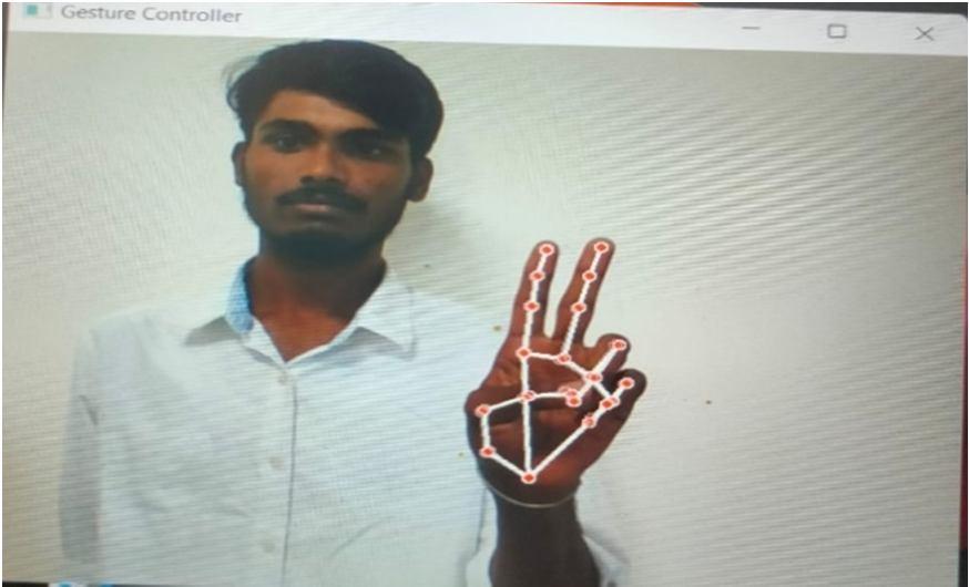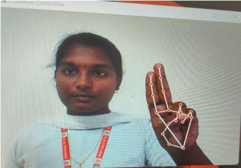 In this model we have different hand gestures to perform the different actions for this model project. After the verification of the code as a result the camera will open to recognise and capture the different hand gestures and perform the operations as shown.