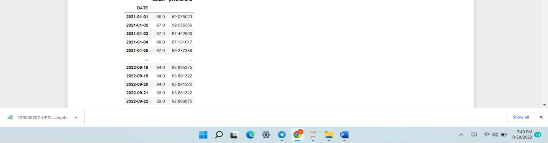 We discovered that feature scaling is a vital aspect of ML models during this project. The essential concept is to create sure that everyone amongst the functionality are on the identical scale. Our aim is to feature more variables which could affect the weather of a given area. Since outliers are bad for ML models, they should be avoided or omitted before determining the foremost effective match. This not only improves the model's precision, but it also keeps the findings consistent, which may show a discrepancy if outliers were included. Professional weather forecasters aren't flawless, but they're usually more reliable than this linear regression model's predictions. Weather might be a non linear system, per this.