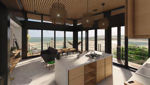 Individual structures are set in the overgrown landscape, creating privacy and openness to private gardens. Following detailed research into wind and sun patterns, each dwelling has been carefully arranged to create comfort through bio climatic design while ensuring they are all provided with privacy and unique views.