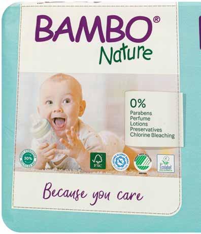 30 g, 26,33 Eur/kg Drėgnosios servetėlės BAMBO NATURE 80 vnt., 0,04 Eur/vnt. Sauskelnėms BAMBO NATURE 7 rūšių