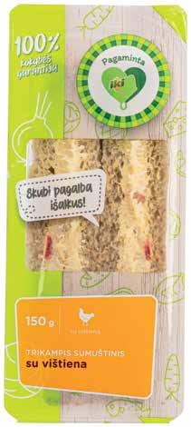 PAGAMINTA IKI trikampiai sumuštiniai su vištiena 150 g, 2 rūšių, 14,60 Eur/kg
