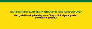 31 PIRKITE ir iki.lt Tyrelėms SEMPER Įvairių rūšių Ir IKI EXPRESS Servetėlės HUGGIES 56 vnt., 0,03 Eur/vnt. A lygio parduotuvėse Sauskelnėms PAMPERS PREMIUM CARE, PREMIUM PANTS 8 rūšių A lygio parduotuvėse Tualetinis popierius COLIBRI FAMILY PACK 24 rit., 0,25 Eur/rit. Indaplovių tabletės FINISH 40–50 vnt., 2 rūšių A lygio parduotuvėse Tualeto valiklis BREF COLOR 3 vnt./ pak., 2 rūšių, 1,10 Eur/vnt. A lygio parduotuvėse Popierinis rankšluostis COLIBRI MEGA 1 vnt., 2 sl. Indų ploviklis FAIRY 450 ml, 3 rūšių, 2,87 Eur/l Valiklis AJAX 1 l, 2 rūšių A lygio parduotuvėse Skalbimo kapsulės PERSIL 38–46 vnt., 3 rūšių A lygio parduotuvėse 3 99 TIK 7 49 Įprasta kaina 1 29 TIK 2 09 Įprasta kaina 5 19 TIK 8 59 Įprasta kaina 3 29 TIK 5 49 Įprasta kaina 1 49 TIK 1 99 Įprasta kaina Skystasis skalbiklis FROSCH 1,8 l, 24 skalb., 2 rūšių A lygio parduotuvėse Skystasis skalbiklis WOOLITE 0,9 l, 15 skalb., 3 rūšių 2 79 TIK 5 59 Įprasta kaina 1 89 TIK 3 19 Įprasta kaina -20% -25% TIK 22 99 Įprasta kaina 11 49 TIK 21 49 Įprasta kaina 12 89 5 99 11 99 -50% Tualetinis popierius RENOVA 8 rit., 3 sl., 0,43 Eur/rit. 3 49 TIK 5 99 Įprasta kaina