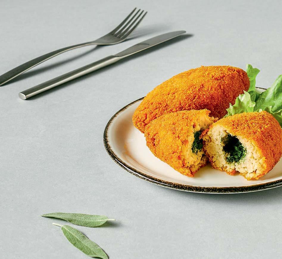 Legendinis „Kyjivo“ kotletas, kurio kokybė kartais gali nulemti net geriausio restorano reputaciją. Mūsų variantas nepaliks nei alkanų, nei abejingų, nes skoniu originalui jis nenusileidžia, užtat suteikia galimybę pasimėgauti šiuo patiekalu nevartojantiems mėsos. Kotlete gausu skaidulinių medžiagų, nes jo recepto pagrindas – virtos pupelės. Sviestas pagardina gaminį ir suteikia jam malonią tekstūrą bei aromatą. IKI kulinarijos skyriuose įvairių patiekalų ras tie, kurie mėsos valgo mažiau, rečiau arba jos visai atsisako. Be mėsos Jums tiesiog skaniau? Pasistengsime, kad taip ir būtų. Pažadame –viskas pagaminta galvojant apie Jus. Ir – viskas be mėsos. Vegetariškas keptas KYJIVO KOTLETAS 382 -40% 3 98
