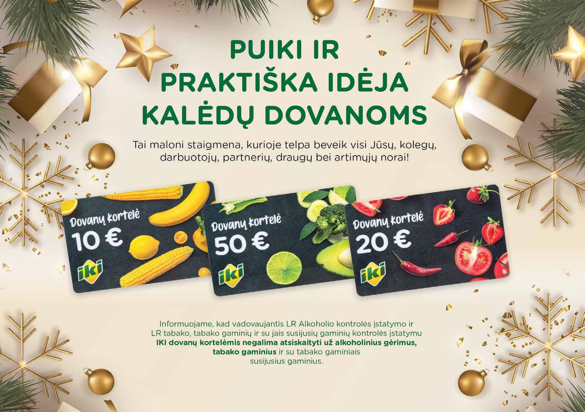 PIGINTUVAS jau ir NAUJIENA iki.lt KALĖDINIO PIGINTUVO PASIŪLYMUS: -50% -50% -50% Braškių skonio jogurtinis gėrimas ACTIMEL 4x100 g, 3,10 Eur/kg Alyvuogių aliejui Įvairių rūšių Tualetiniam popieriui, popieriniams rankšluosčiams ir servetėlėms RENOVA, įvairių rūšių. Ir IKI EXPRESS RED BULL SUGARFREE, ZERO energiniams gėrimams 0,25 l, 0,355 l, 3 rūšių Pasiūlymai galioja su IKI lojalumo kortele 2022 m. gruodžio 19 – gruodžio 26 d. Nuolaida netaikoma CLEVER, akcijų ir išpardavimo prekėms. Nuolaidos nesumuojamos. Prekių kiekis ribotas. ** Braškių skonio jogurtinio gėrimo ACTIMEL kaina galioja perkant ne daugiau nei 5 vnt., RED BULL SUGARFREE ZERO energinio gėrimo ne daugiau nei 6 prekės vnt. vieno apsipirkimo metu 1 kartą per dieną. Taros užstato vertė į gėrimo kainą neįskaičiuota. Kaina galioja perkant ne daugiau nei 6 prekės vnt.** 124 -50% 2 49 Kaina galioja perkant ne daugiau nei 5 prekės vnt. ** 20