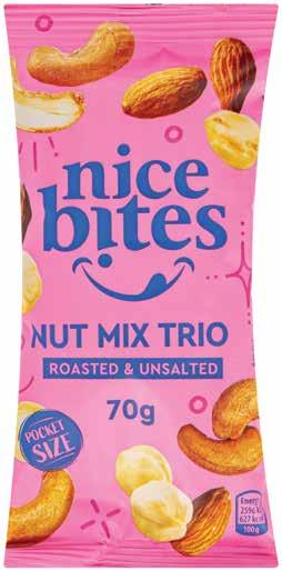 NICE BITES skrudintas, nesūdytas TRIJŲ RIEŠUTŲ mišinys 70 g, 1,99 Eur/vnt. Ir IKI EXPRESS 1 99 1 1 Šokoladinis batonėlis
