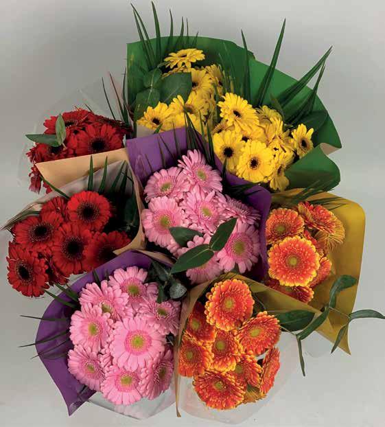 Skintos smulkiažiedės GERBEROS su žaluma, 8 vnt.