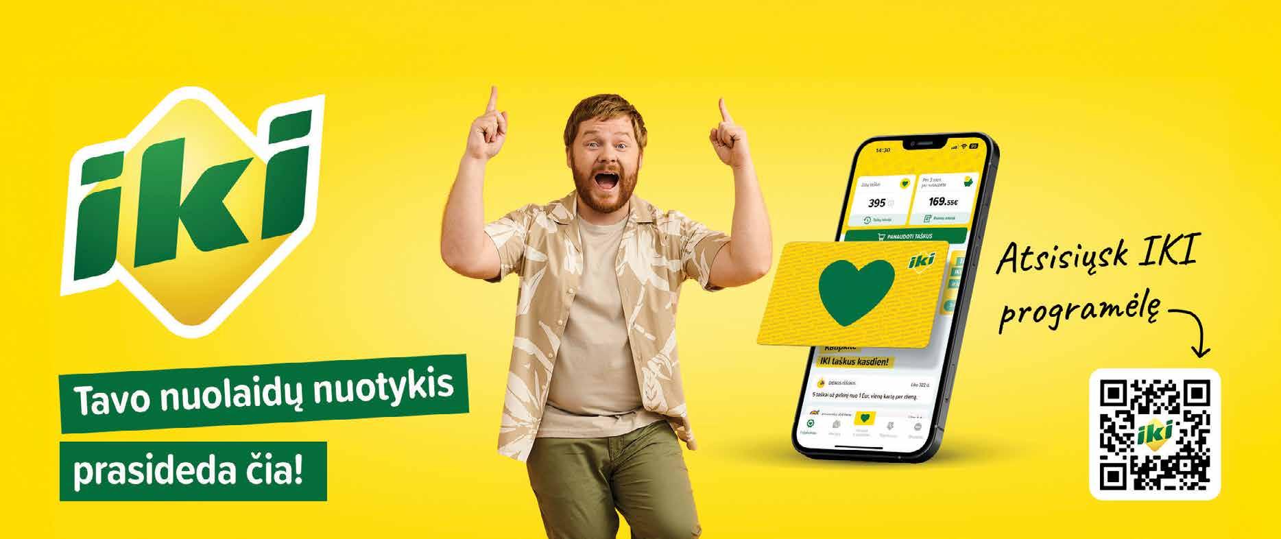 Nurodyta kaina arba nuolaida galioja perkant tik su IKI lojalumo kortele ar programėle