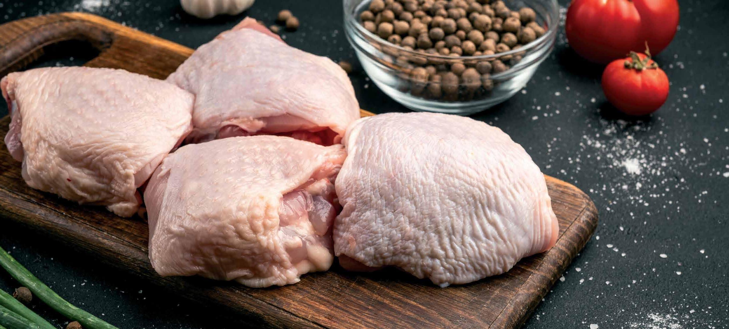Broilerių šlaunelės su kaulu (sveriamoje vitrinoje, užauginta be antibiotikų) 1 kg