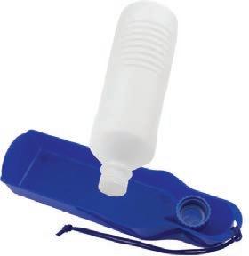 The water bottle holds 500 ml and is interchangeable with most disposable water bottles