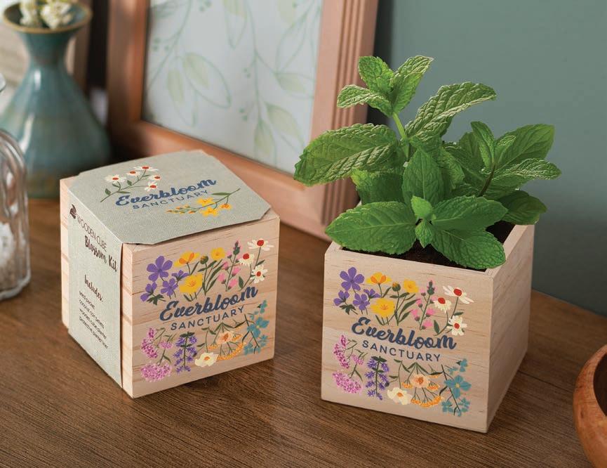 A full-color wrap provides space for branding and planting instructions while each kit includes everything needed to begin growing
