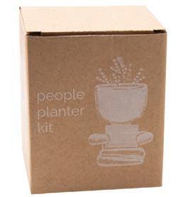 Each kit comes packaged in a natural kraft box which includes a people planter, imprinted wood sign, seed packet, coconut coir pellet, and instructions - everything needed to start growing instantly