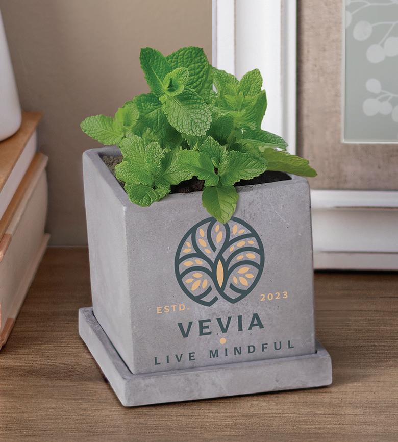 Includes: 1 Seed Packet (Specify on Order), 2 Coconut Coir Pellets, and 1 Stone Planter Colors: Gray Imprint Area: 2 3/8" x 2 3/8"