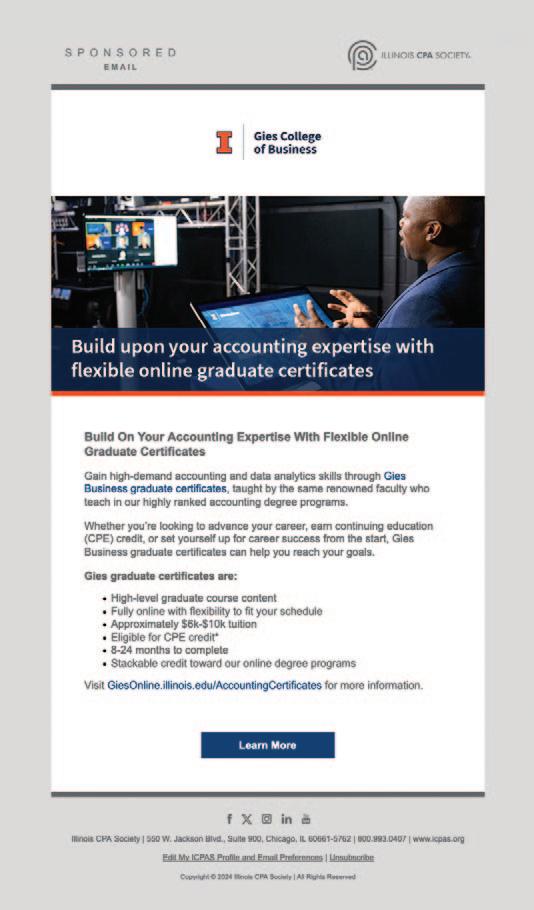 ICPAS offers several advertising and sponsorship opportunities designed to help you reach Illinois’ leading accounting and finance professionals and business leaders. Choose one of our packages, or create a custom campaign of your own.