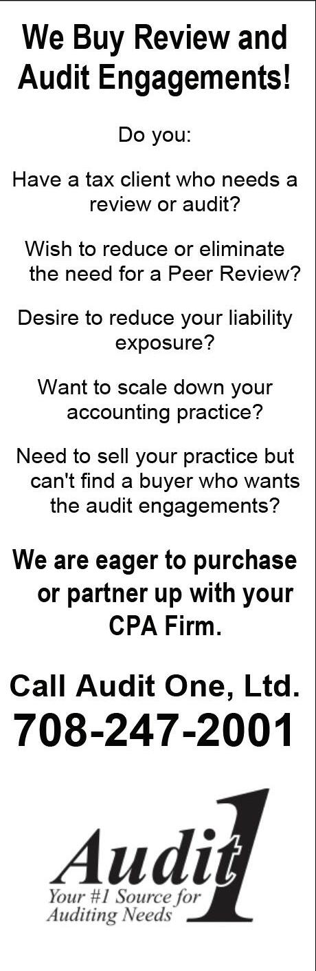 Orland Park Tax & Accounting $567K; Downtown Chicago CPA $120K; Knox Co EA Tax $295K; Springfield Area CPA $434K, Aurora/Naperville Area CPA $445K; Peoria Audit Practice $155K; NE McHenry & NW Lake Co $900K; Schaumburg CPA $392K; Southern IL CPA $1 4M; E Central IL CPA $275K; SW Macoupin Co CPA $30K
