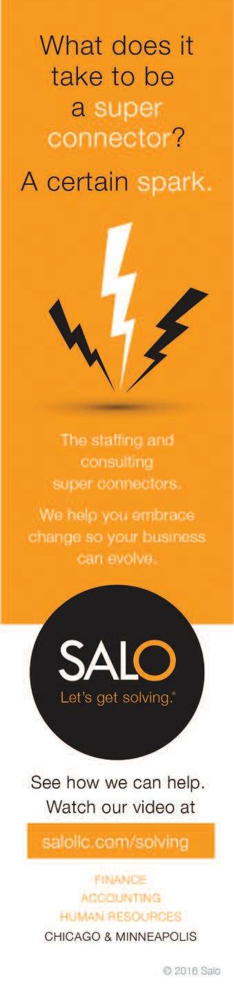 INSIGHT is the official magazine of the Illinois CPA Society, 550 W Jackson, Suite 900, Chicago, IL 60661, USA Its purpose is to serve as the primary news and information vehicle for some 24,000 CPA members and professional affiliates Statements or articles of opinion appearing in INSIGHT are not necessarily the views of the Illinois CPA Society The materials and information contained within INSIGHT are offered as information only and not as practice, financial, accounting, legal or other professional advice Readers are strongly encouraged to consult with an appropriate professional advisor before acting on the information contained in this publication It is INSIGHT’s policy not to knowingly accept advertising that discriminates on the basis of race, religion, sex, age or origin The Illinois CPA Society reserves the right to reject paid advertising that does not meet INSIGHT’s qualifications or that may detract from its professional and ethical standards The Illinois CPA Society does not necessarily endorse the non-Society resources, services or products that may appear or be referenced within INSIGHT, and makes no representation or warranties about the products or services they may provide or their accuracy or claims The Illinois CPA Society does not guarantee delivery dates for INSIGHT The Society disclaims all warranties, express or implied, and assumes no responsibility whatsoever for damages incurred as a result of delays in delivering INSIGHT INSIGHT (ISSN-1053-8542) is published four times a year, in Spring, Fall, Fall, Winter, by the Illinois CPA Society, 550 W Jackson, Suite 900, Chicago, IL 60661, USA , 312 993 0407 or 800 993