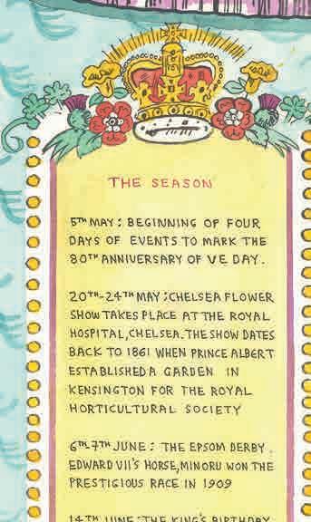 Welcome to the spring issue of The Illustrated Royalty in Britain. In our cover feature, royal author Robert Hardman provides an insightful pro le of Princess Anne, the famously hard working royal and the right hand man’ to her brother The King. The Princess Royal shows no sign of slowing down, as she approaches her 75th birthday this August. The working members of the Royal Family have a packed schedule for the ma ority of the year, but it’s during spring and summer, when royal ceremonies, pageantry, sporting and social xtures come thick and fast, that we see them in full bloom. We’re celebrating The Season’ in this issue, with features on Chelsea Flower Show and Royal Ascot, the greatest fashion show on turf, while also looking back at the tradition of court presentations and the phenomenon of the debutante. Drawing on the rich heritage of The Illustrated London News archive, we commemorate the 80th anniversary of VE Day and the Royal Family’s wartime contribution and look back at royalty’s faithful canine friends through the years. And, in a nod to the ILN’s tradition of illustration, artist Adam Dant, whom many call a modern day Hogarth’, has created a splendid,