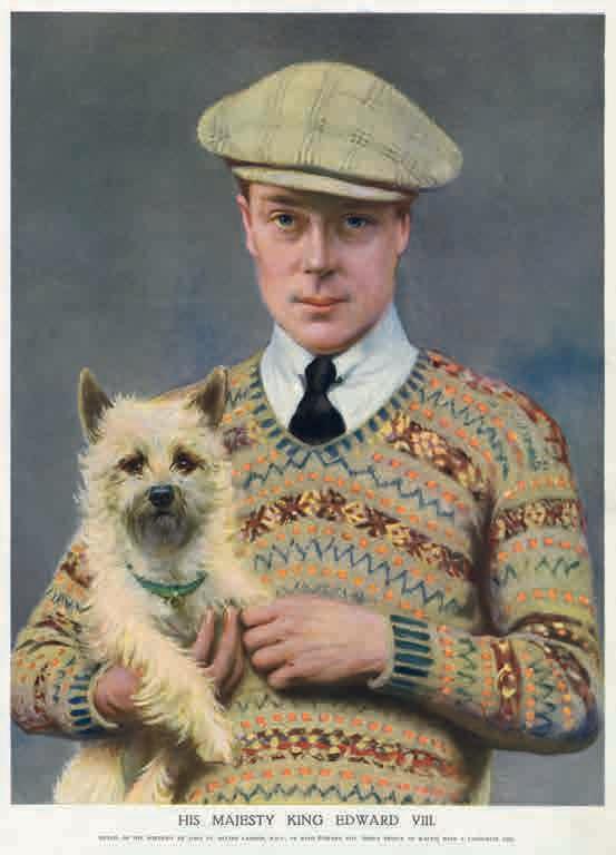 shared his father’s fondness for cairns and owned several throughout the 1930s, including Slipper, who he bought as a gift for Wallis Simpson in 1934. When he went abroad following the Abdication, he sent Slipper to Wallis at the Château de Candé, which, remembered Wallis in her memoirs, felt like, “David had sent part of himself”. Alas, the next day, while out walking on a golf course near the Château, Slipper was bitten by a snake and died that evening. “Now the principal guest at the wedding is no more,” Wallis tearfully wrote to Edward.
