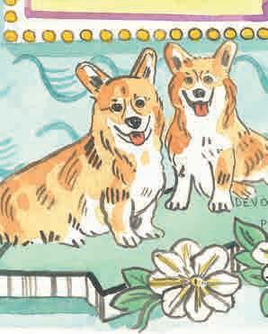 The orks had moved to oyal Lodge on the Windsor estate in 1 31, a substantial property with plenty of room for dogs. oon, Dookie was joined by another corgi from o avel, ane, together with Choo-Choo the Tibetan lion dog and three yellow labradors, Mimsy, ti y and crummy. Dogs completed the ork family’s image of domestic contentment, captured in photographs by Lisa heridan and Marcus dams, and circulated widely in TheIllustrated London News and other maga ines. Queen li abeth II owned around 30 corgis and dorgis’ during her lifetime – the latter the result of a liaison between Princess Margaret’s dachshund Pipkin and one of The Queen’s corgis, Tiny. Most are descended from usan, who was an 18th birthday gift to Princess li abeth from her parents in 1 . usan, who lived until 1 , accompanied her mistress on her honeymoon in 1 7, and as matriarch of the royal corgi dynasty, was the grandmother of Whisky and herry, who in turn became childhood pets of Prince Charles and Princess nne. Whenever The Queen was away on tours or o cial engagements, the corgis were usually cared for by ancy enwick, wife of the gamekeeper at Windsor, but it is clear er Majesty very much liked to have them around her. During one summer at almoral, in 1 81, no fewer than 13 corgis went along too.