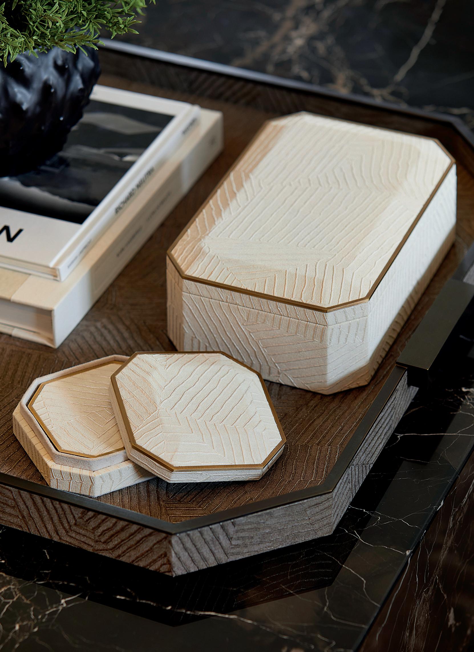 Create a sculptural centrepiece in your home with Davidson’s smart new Dusk Collection, a range encapsulating the magical time around sunset and the start of night. Incorporating finishes in Sand Storm, Moon Crater and Moroccan Sunset (pictured), the collection spans a Paris Dining table, a Madison Coffee table and this sleek Wedge Console Table, which comes in this instance in a lacquer with distressed bronze finish. Dusk Collection from £8,100, davidsonlondon.com