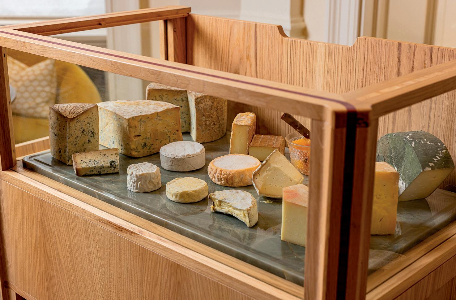 The trolley renaissance isn’t simply about indulging a taste for nostalgia, however. At Mauro Colagreco at Raffles London at The OWO, the cheese trolley looks as minimalistically modern as the rest of the dining room. “I wanted to break away from the ordinary cart and work with local artisans to produce a finished product consistent with the restaurant’s design,” Colagreco explains. “Our trolley is based on showcasing the breadth of British cheeses available and UK craftsmanship but served with the savoir-faire of French haute gastronomy.”