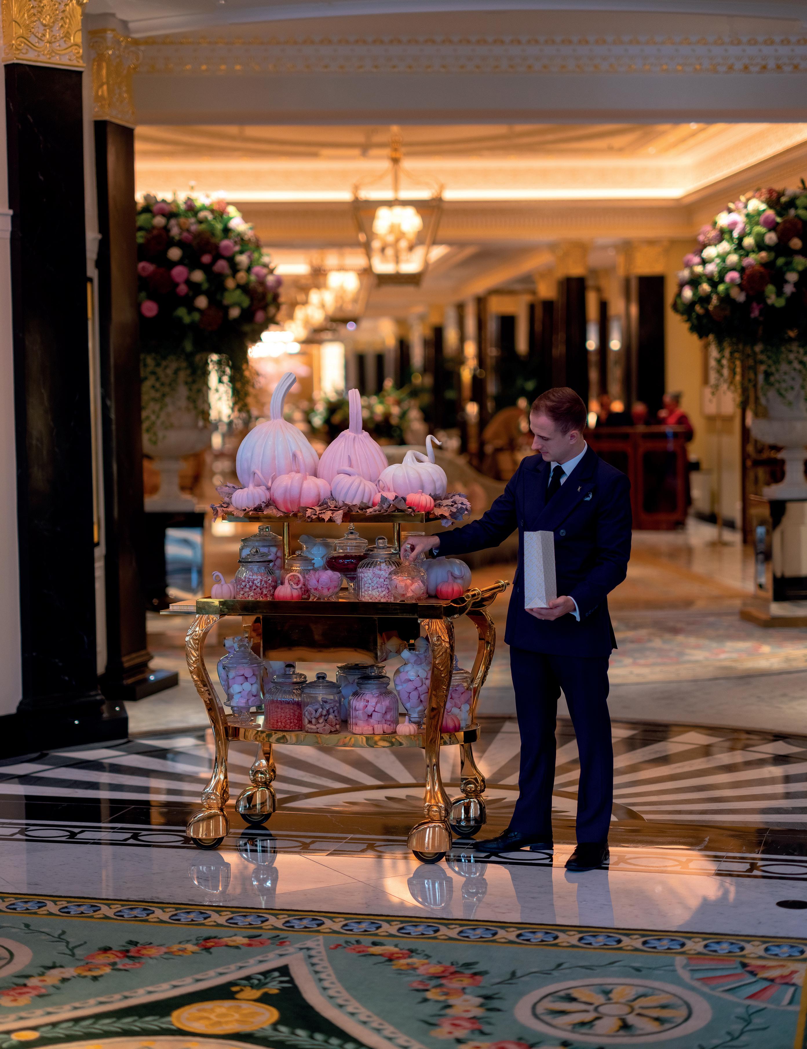 This sense of historic formality has always found a home in grand hotels such as The Ritz, where a four-course Arts de la Table menu includes trolleys bearing beef Wellington, crêpe Suzette and a tea infusion ceremony that looks and smells like a mobile herb garden. When The Promenade, the all-day dining and afternoon tea lounge at The Dorchester, was unveiled after a full renovation last year, it came complete with trolleys laden with seasonal salads, steak Diane and crêpe Suzette. Halloween will see a pink pumpkin sweet trolley doing the rounds.