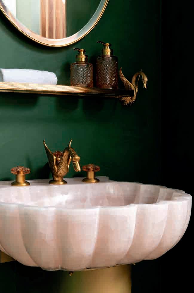 Making soaking time an art form, West One Bathrooms has unveiled a complete renovation of its flagship Mayfair store. Reimagined in collaboration with interior designer Naomi Astley Clarke, the showroom features blush-toned panelling with inset Lalique crystal panels, a Champs-Élysées chandelier by Lalique and a mural hand-painted by artist Freddie Wimsett. Pink Onyx Scalloped Basin including wall brackets, £11,904 inc. VAT, westonebathrooms.com