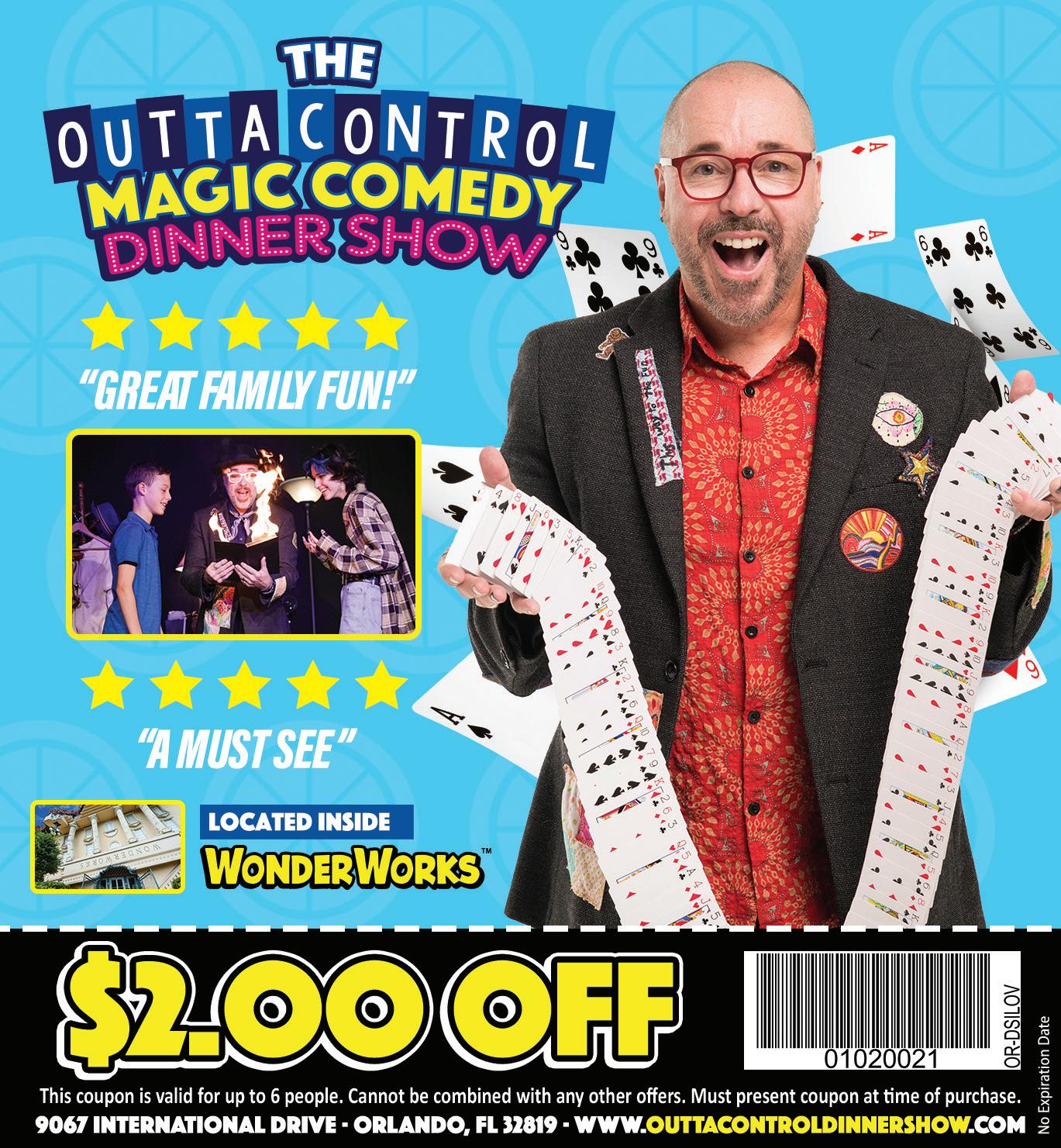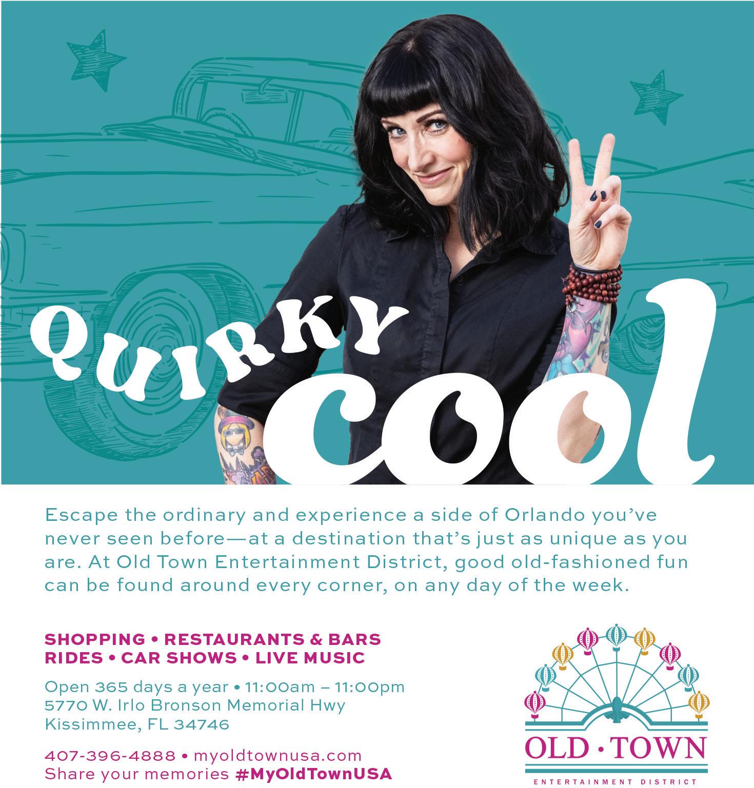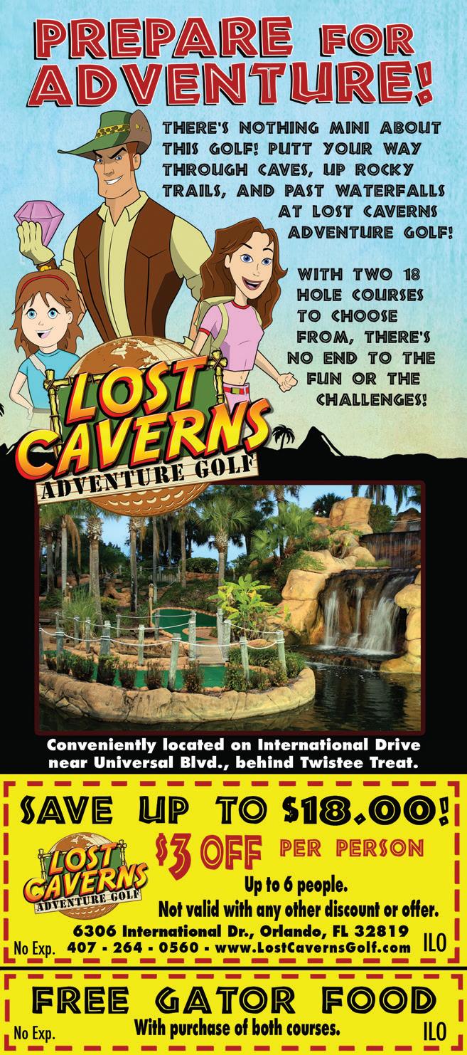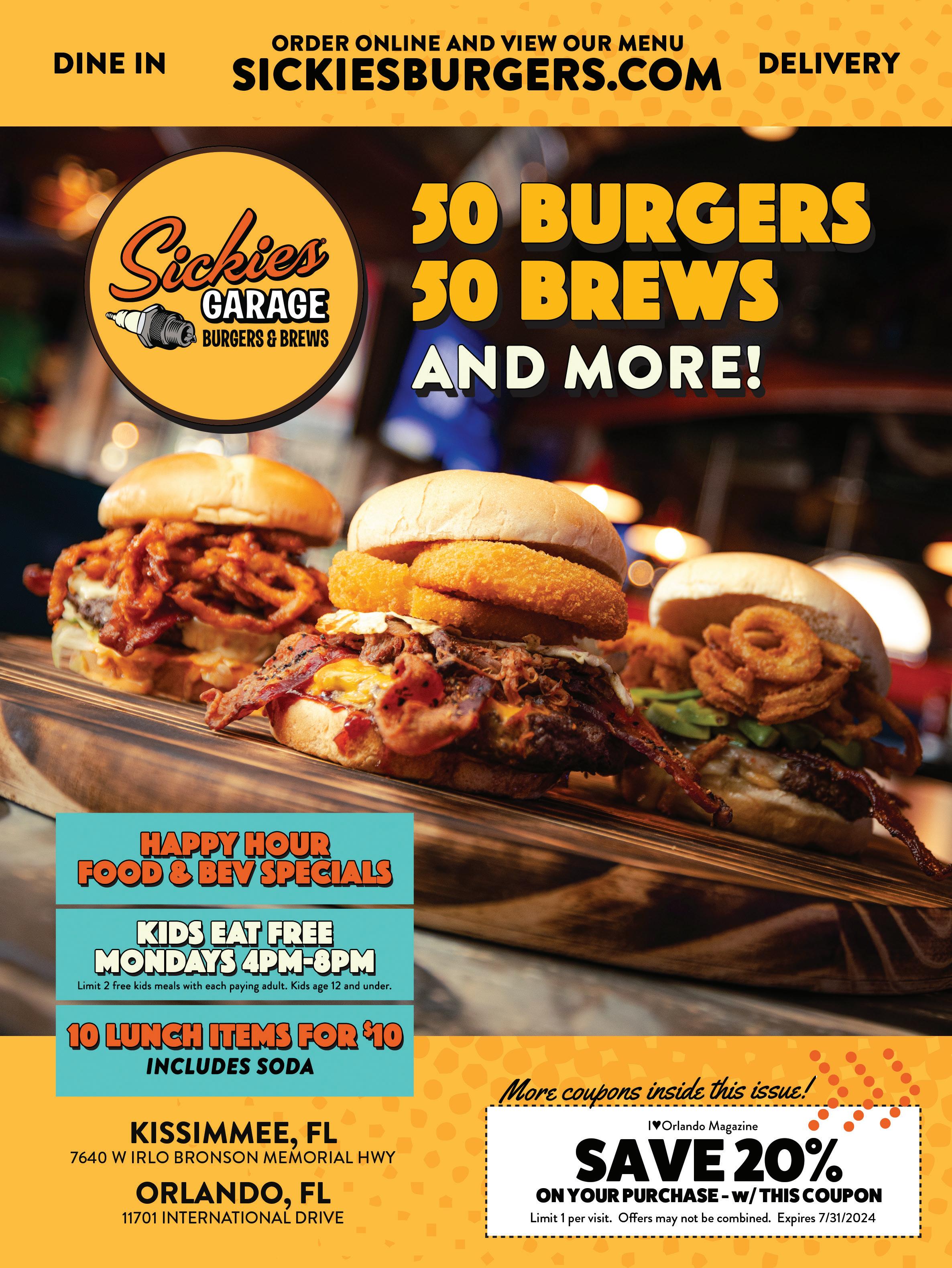 64 I LOVE ORLANDO Spring 2024 Index of Advertisers play page A#1 Bass Guide Service 6 Andretti Indoor Karting & Games 15 Apex Air Tours 7 Boggy Creek Airboat Rides 7 Bok Tower Gardens 33 Buena Vista Watersports 29 Caribbean Moonshine Distillery 6 Charles Hosmer Morse Museum of American Art 33 Clearwater Marine Aquarium 24 Congo River Golf Coupon Book Crayola Experience 24 Crazy Gator Airboat Tours 13 Dave & Buster's Orlando 29 Dezerland Park Orlando 13 Drafts Mission Control Game Room & Bowling 38 Drawn to Life presented by Cirque du Soleil and Disney 11 Fun Spot America Kissimmee and Orlando 16 Gatorland 25 Hollywood Drive-In Golf Coupon Book Howl at the Moon 8 I-Drive Star Bar 22 ICON Park 9 Kennedy Space Center Visitor Complex 28 Kissimmee Swamp Tours Coupon Book LEGOLAND® Florida Resort 5 Lonely Dog Immersive Experience 21 Lost Caverns Adventure Golf 16 Machine Gun America™ 36 Madame Tussauds Orlando 9 Museum of Illusions, Orlando 24 Old Town 17 Old Town SlingShot 22 Orlando City Soccer Club 29 Orlando Princess & Canaveral Princess 29 Orlando StarFlyer 22 Orlando Wine Bar Tours 8 Peppa Pig Theme Park Florida 28 Pirate's Cove Adventure Golf 39 Revolution Adventures 6 Ripley's Believe It or Not® 8 Screamin’ Gator Zip Line at Gatorland 25 SEA LIFE Orlando 9 SeaWorld® Parks & Resorts™ Orlando 19 Sunset Walk Slingshot 22 The Escape Game 23 The Wheel® at ICON Park™ 9 Topgolf Orlando 12 Universal Orlando Resort 3 Walt Disney World® Back Cover Westgate Cocoa Beach Pier 42 Westgate River Ranch Resort & Rodeo 31 Wild Florida 30 WonderWorks 23 ZooTampa at Lowry Park 27 dinner theaters & shows Capone’s Dinner & Show 34 Jewel 20 Mango's Tropical Café 38 Outta Control Dinner Show 37 Pirates Dinner Adventure 39 Polynesian Fire Luau 37 Teatro Martini "Musical Improv Experience" 52 chef’s review Hash House A Go Go Orlando 44 River Ranch Cattle Company 44 Shark's Underwater Grill 44 eat 126 Chinese Restaurant 58 818 Heat Hot Pot & BBQ 49 A&W All American Food - Old Town 17 Black Angus Steakhouse 54 Bobby's Garage Bar Coupon Book Boston Lobster Feast 48 Bourbon Street Cajun Boil 57 China Buffet 49 Drafts Sports Bar & Grill 51 El Patron Mexican Restaurant & Cantina Coupon Book Giordano’s Italian Restaurant & Pizzeria 49 Golden Corral 59 Hard Rock Cafe 57 Hokkaido Chinese & Japanese Buffet 58 Jerusalem Middle Eastern Restaurant Coupon Book Los Amigos Mexican Grill & Tequila Bar 47 Old Town Ice Cream 17 Orlando Cat Cafe 53 Planet Hollywood 53 Shoney's Coupon Book Sickies Garage Burgers & Brew 2 Sweet Dreams Ice Cream Café 17 Texas Roadhouse 57 The K-POT Korean BBQ & Hot Pot Restaurant 55 Tomatoes Restaurant 58 Villa Italiano Chophouse 45 market AdventHealth 74 Enterprise 62 Interval International 41 K&M Rentals 61 Kingdom Strollers 60 Lake Buena Vista Factory Stores 43 MetroWest Golf Club 60 More Than Mobility 61 My Airbrush Shop Coupon Book Pepsi 75 Serenity Spa by Westgate 40 The Medical Concierge 61 Tickets2You 67 Tourist Information Center 66 Walgreens 65 Westgate Resorts 72 World of Westgate Loyalty 63