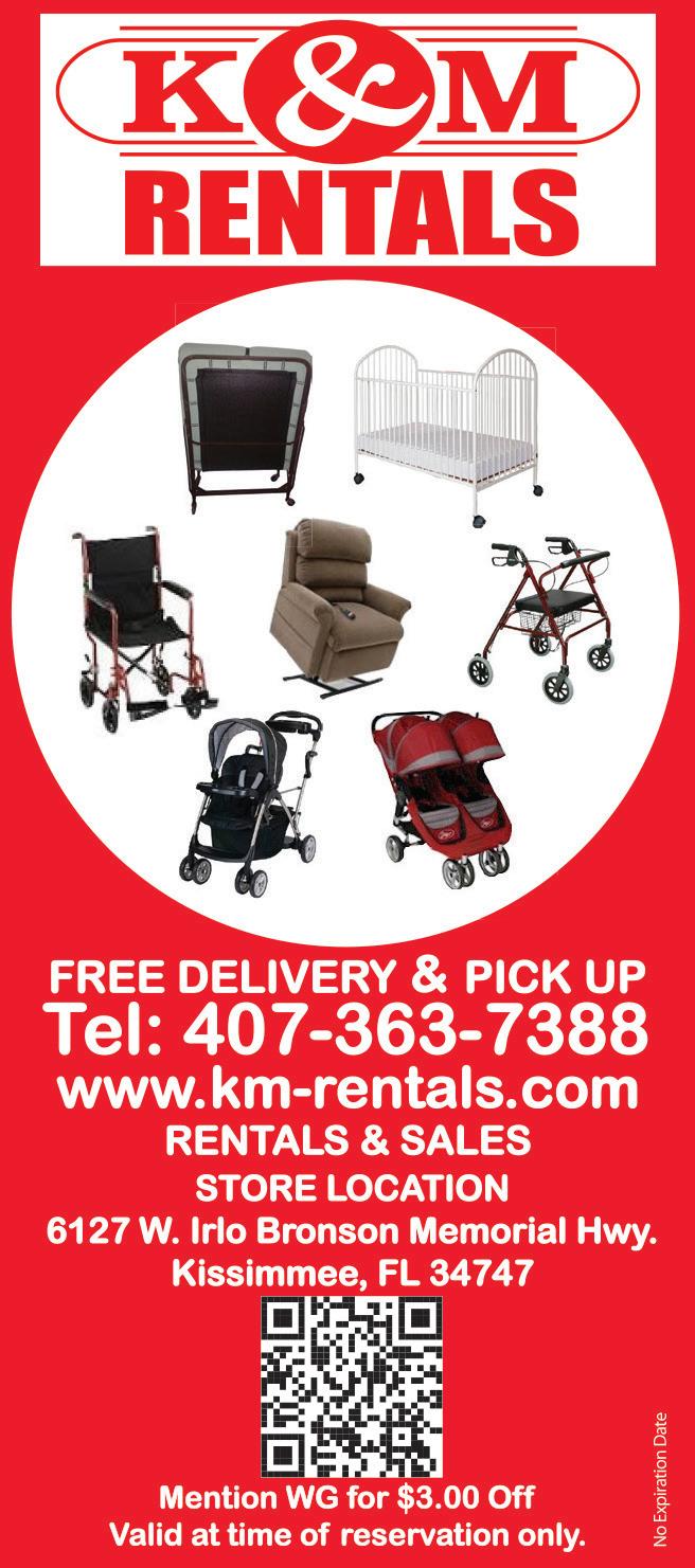 K&M Rentals has been in business since 1993, renting and selling quality baby and medical equipment. They strive to provide excellent customer service, timely deliveries and competitive pricing.