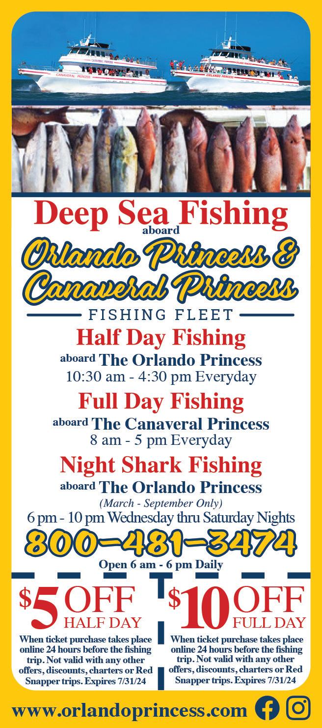 MANSON FOR MORE I LOVE ORLANDO INFORMATION: 407.351.3351 / 1.800.925.2200 Advertising Ext. 298/537 Marketing Ext. 298 Circulation Ext. 537 Production ............................................. Ext. 298/537 Subscriptions Ext. 286 I LOVE ORLANDO is published three times annually by Central Florida Investments, Inc., 5601 Windhover Drive, Orlando, Florida 32819. Copyright© 2024. All rights reserved. No portion of this publication may be reproduced in any form without express written permission of the publisher. Copies available within the United States for $3.99, including shipping and handling. Statements or opinions herein are those of the authors and do not necessarily reflect the views of the publisher, Central Florida Investments, Inc. or the editors. Please note advertiser content and hours of operation are subject to change. Central Florida’s Premier Bass Fishing Guide Service $25.00 Off Guided Trip Not valid with any other offer. Exp. 7/31/24 ILO •Great Family Fun!